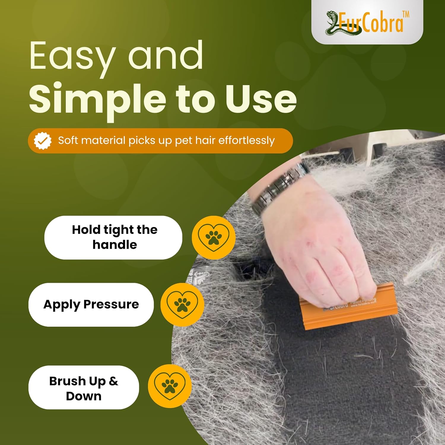 Say goodbye to stubborn pet hair with the FurCobra Pet Hair Remover Tool. Whether it's on carpets, furniture, or car interiors, this tool makes cleaning quick and hassle-free.